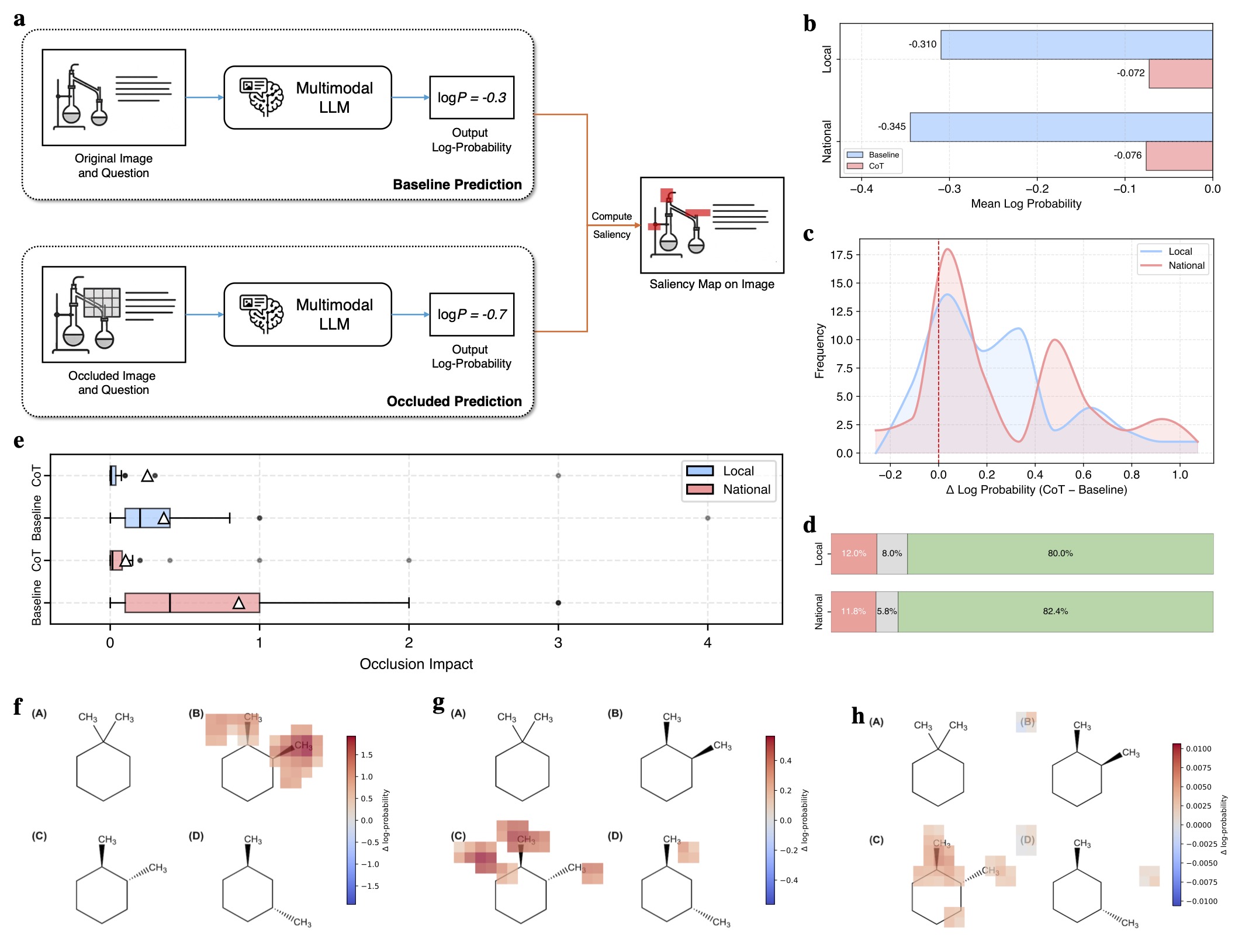 Multimodal scientific reasoning remains a significant challenge for large language models (LLMs), particularly in chemistry, where problem-solving relies on symbolic diagrams, molecular structures, and structured visual data. Here, we systematically evaluate 40 proprietary and open-source multimodal LLMs, including GPT-5, o3, Gemini-2.5-Pro, and Qwen2.5-VL, on a curated benchmark of Olympiad-style chemistry questions drawn from over two decades of U.S. National Chemistry Olympiad (USNCO) exams. These questions require integrated visual and textual reasoning across diverse modalities. We find that many models struggle with modality fusion, where in some cases, removing the image even improves accuracy, indicating misalignment in vision-language integration. Chain-of-Thought prompting consistently enhances both accuracy and visual grounding, as demonstrated through ablation studies and occlusion-based interpretability. Our results reveal critical limitations in the scientific reasoning abilities of current MLLMs, providing actionable strategies for developing more robust and interpretable multimodal systems in chemistry. This work provides a timely benchmark for measuring progress in domain-specific multimodal AI and underscores the need for further advances at the intersection of artificial intelligence and scientific reasoning.